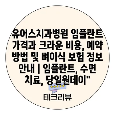 유어스치과병원 임플란트 가격과 크라운 비용, 예약 방법 및 뼈이식 보험 정보 공지 | 임플란트, 수면 치료, 당일원데이 에 대해 자주 묻는 질문 TOP 5