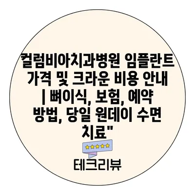 컬럼비아치과병원 임플란트 가격 및 크라운 비용 공지 | 뼈이식, 보험, 예약 방법, 당일 원데이 수면 치료에 대해 알아보겠습니다.
