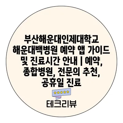 부산해운대인제대학교 해운대백병원 예약 앱 설명서 및 진료시간 공지 | 예약, 종합병원, 전연락 추천, 공휴일 진료 에 대해 자주 묻는 질문 TOP 5