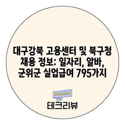 대구강북 고용센터 및 북구청 채용 정보: 일자리, 알바, 군위군 실업급여 795가지