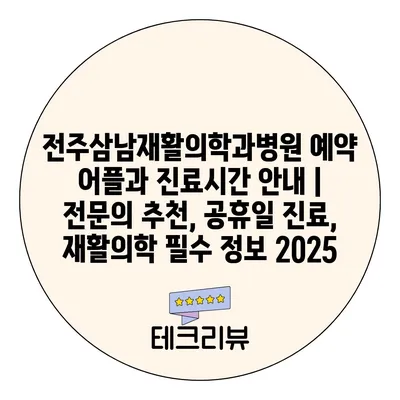 전주삼남재활의학과병원 예약 어플과 진료시간 공지 | 전연락 추천, 공휴일 진료, 재활의학 필수 정보 2025에 대해 알아보겠습니다.