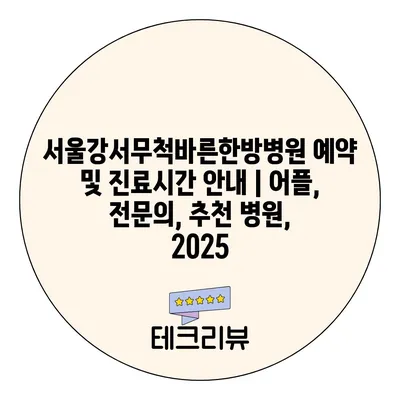 서울강서무척바른한방병원 예약 및 진료시간 안내 | 어플, 전문의, 추천 병원, 2025