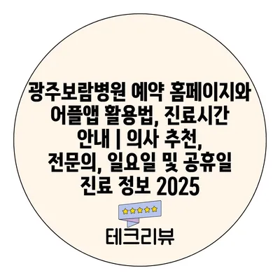 광주보람병원 예약 홈페이지와 어플앱 활용법, 진료시간 공지 | 의사 추천, 전연락, 일요일 및 공휴일 진료 정보 2025 에 대해 자주 묻는 질문 TOP 5