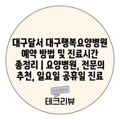대구달서 대구행복요양병원 예약 방법 및 진료시간 총정리 | 요양병원, 전연락 추천, 일요일 공휴일 진료 에 대해 자주 묻는 질문 TOP 5