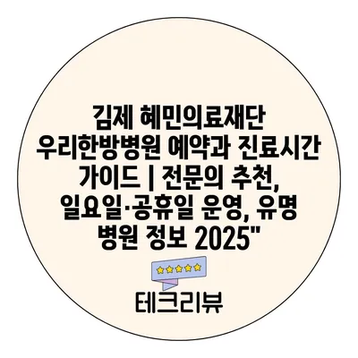 김제 혜민의료재단 우리한방병원 예약과 진료시간 가이드 | 전문의 추천, 일요일·공휴일 운영, 유명 병원 정보 2025″