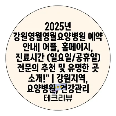 ✅ 2025년 강원영월요양병원의 진료시간과 예약 방법을 알아보세요!