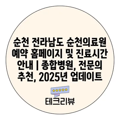 순천 전라남도 순천의료원 예약 홈페이지 및 진료시간 공지 | 종합병원, 전연락 추천, 2025년 업데이트 에 대해 자주 묻는 질문 TOP 5