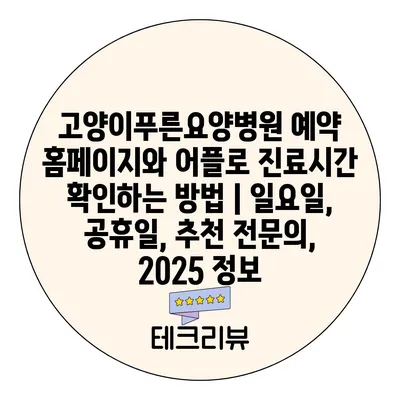 고양이푸른요양병원 예약 홈페이지와 어플로 진료시간 확인하는 방법 | 일요일, 공휴일, 추천 전문의, 2025 정보