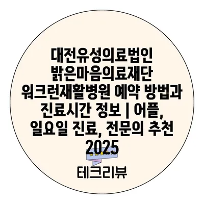 대전유성의료법인 밝은마음의료재단 워크런재활병원 예약 방법과 진료시간 정보 | 어플, 일요일 진료, 전연락 추천 2025에 대해 알아보겠습니다.