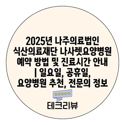 2025년 나주의료법인 식산의료재단 나사렛요양병원 예약 방법 및 진료시간 공지 | 일요일, 공휴일, 요양병원 추천, 전연락 정보 에 대해 자주 묻는 질문 TOP 5