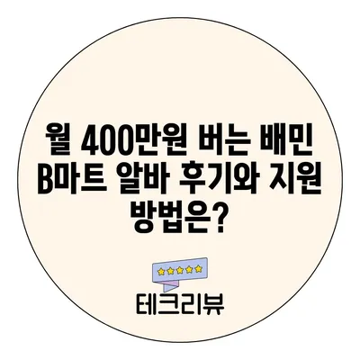 월 400만원 버는 배민 B마트 알바 후기 및 지원 정보! 근무 시간, 단가, 급여, 장점, 단점, 위치 정보를 상세히 알아보세요.