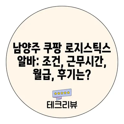 💡 남양주 쿠팡 로지스틱스 알바의 모든 조건과 후기, 월급 정보를 확인해 보세요. 💡