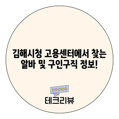 💡 김해시청 고용센터의 최신 구인구직 정보를 지금 바로 확인해 보세요! 💡