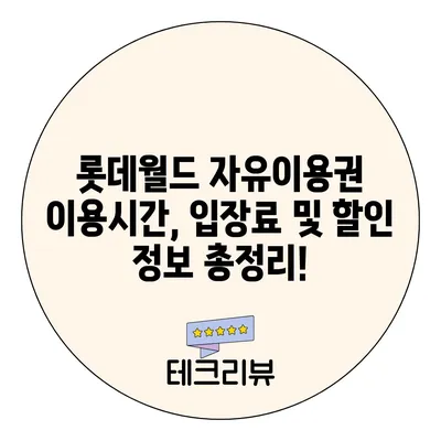 롯데월드 자유이용권의 이용시간, 입장료, 할인 혜택을 자세히 알아보세요! 즐거운 방문을 위한 완벽한 가이드.
