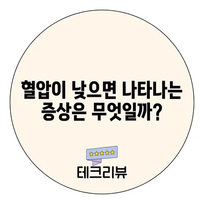 💡 낮은 혈압으로 인한 다양한 증상과 원인을 알아보세요. 💡