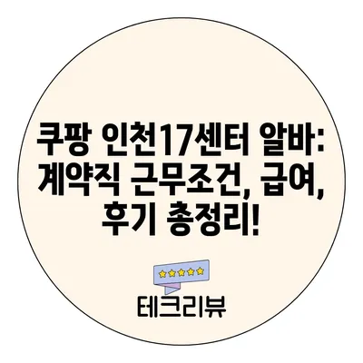 Meta Description: 쿠팡 인천17센터에서 알바하기 위한 방법, 조건, 근무시간, 급여, 후기를 자세히 알아보세요. 물류센터 계약직의 모든 것을 정리했습니다.