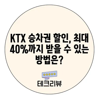 KTX 승차권 할인, 최대 40%까지 받을 수 있는 방법은?