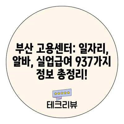 부산 고용센터: 일자리, 알바, 실업급여 937가지 정보 총정리!