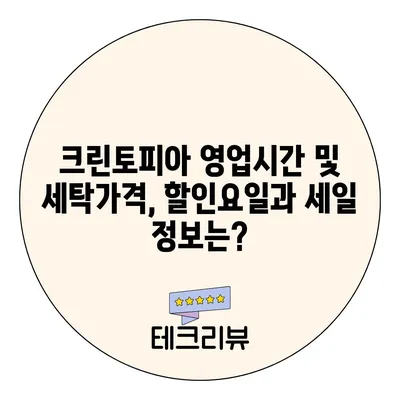 💡 크린토피아의 영업시간 및 할인 정보, 지금 바로 확인해 보세요! 💡