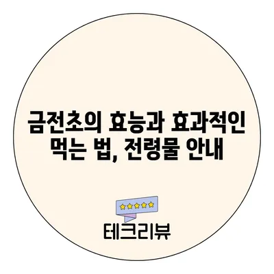 금전초의 효능과 먹는 법에 대해 알아보세요. 건강을 위한 자연요법으로 전령물을 활용하는 방법과 효과에 대해 자세히 소개합니다.