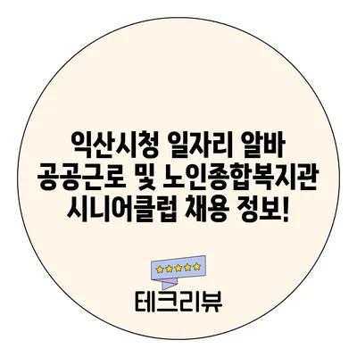 💡 익산시청 공공근로 및 시니어클럽 채용 정보를 자세히 알아보세요. 💡