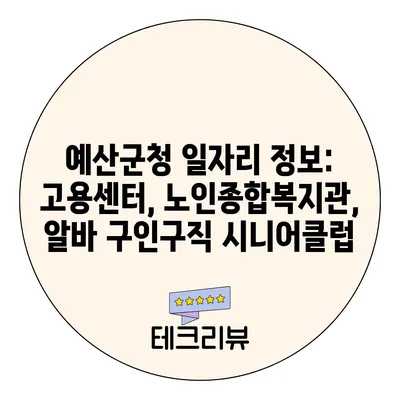 예산군청 일자리 정보: 고용센터, 노인종합복지관, 알바 구인구직 시니어클럽