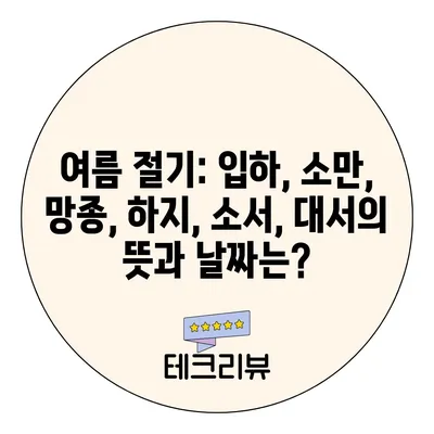 여름 절기: 입하, 소만, 망종, 하지, 소서, 대서의 뜻과 날짜는?