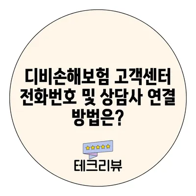 디비손해보험 고객센터 전화번호 및 상담사 연결 방법은?