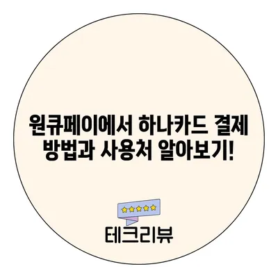 💡 원큐페이와 하나카드의 결제 방법을 알아보세요! 💡