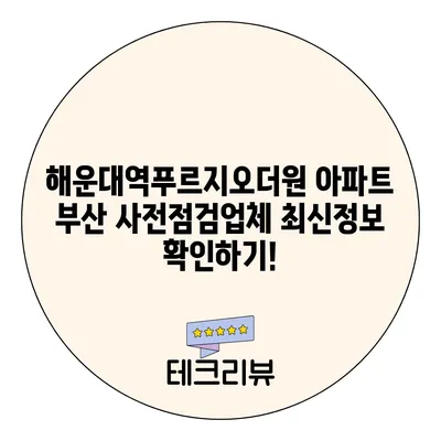 💡 해운대역푸르지오더원 아파트의 사전점검 정보를 지금 확인하세요! 💡
