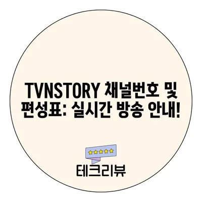 Meta Description: TVNSTORY채널번호 편성표 및 실시간 방송 안내, 채널번호 확인 방법과 온에어 시청 방법에 대하여 알아보세요.