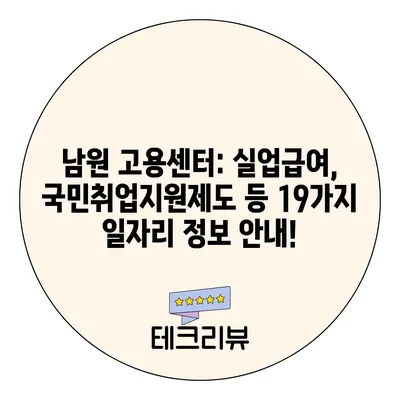 남원 고용센터: 실업급여, 국민취업지원제도 등 19가지 일자리 정보 안내!