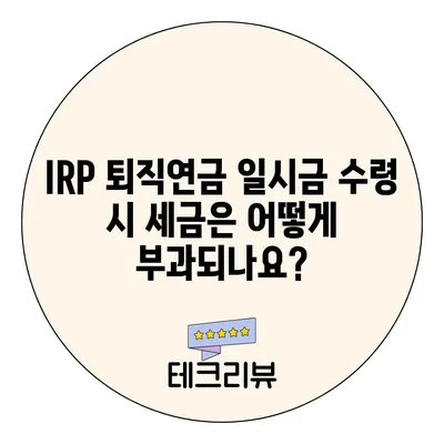 IRP 퇴직연금 일시금 수령 시 세금은 어떻게 부과되나요?