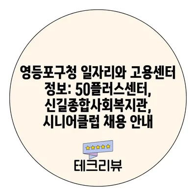 영등포구청 일자리와 고용센터 정보: 50플러스센터, 신길종합사회복지관, 시니어클럽 채용 안내