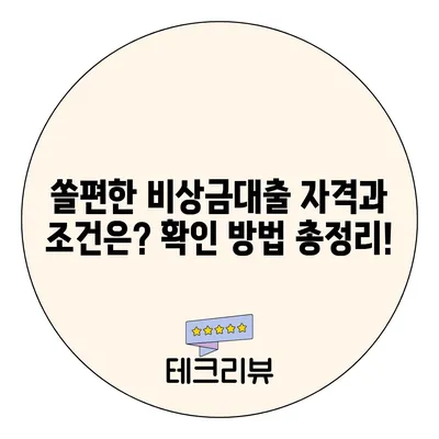 💡 쏠편한 비상금대출의 자격조건을 지금 바로 알아보세요! 💡