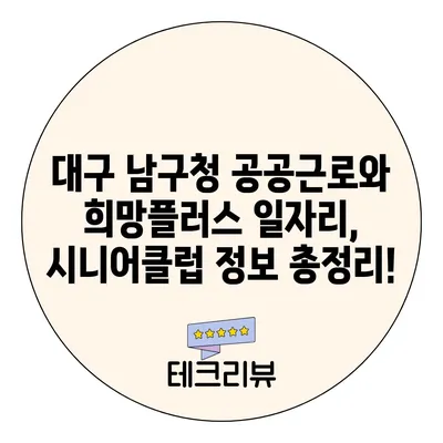대구 남구청 공공근로와 희망플러스 일자리, 시니어클럽 정보 총정리!