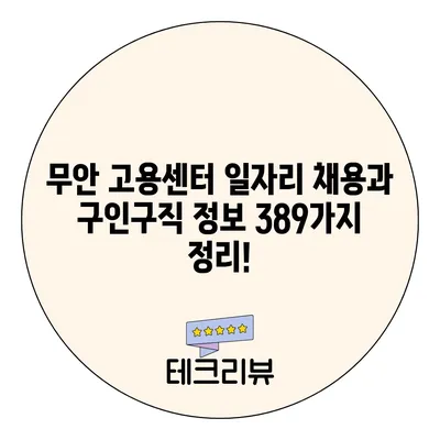 무안 고용센터 일자리 채용과 구인구직 정보 389가지 정리!