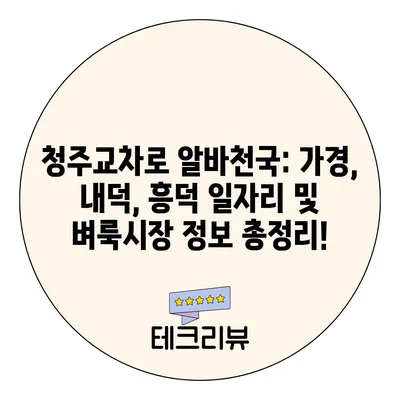 청주교차로 알바천국: 가경, 내덕, 흥덕 일자리 및 벼룩시장 정보 총정리!