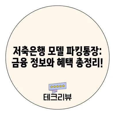 저축은행 모델 파킹통장: 금융 정보와 혜택 총정리!