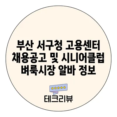부산 서구청 고용센터 채용공고 및 시니어클럽 벼룩시장 알바 정보