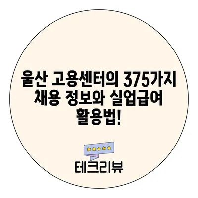 울산 고용센터의 375가지 채용 정보와 실업급여 활용법!