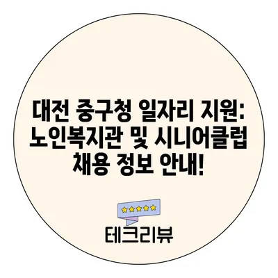 대전 중구청 일자리 지원: 노인복지관 및 시니어클럽 채용 정보 안내!