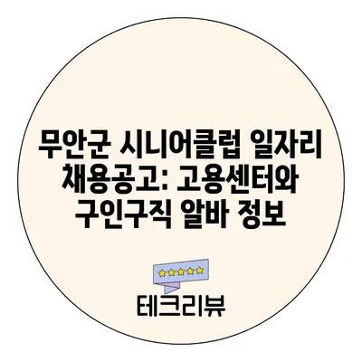 무안군 시니어클럽 일자리 채용공고: 고용센터와 구인구직 알바 정보