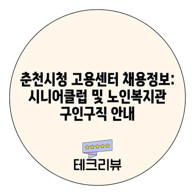 춘천시청 고용센터 채용정보: 시니어클럽 및 노인복지관 구인구직 안내