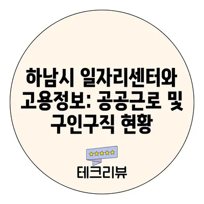 하남시 일자리센터와 고용정보: 공공근로 및 구인구직 현황