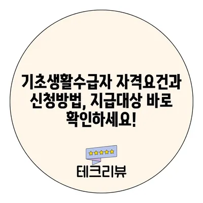 기초생활수급자 자격요건과 신청방법, 지급대상 바로 확인하세요!