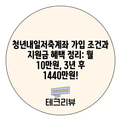 청년내일저축계좌 가입 조건과 지원금 혜택 정리: 월 10만원, 3년 후 1440만원!