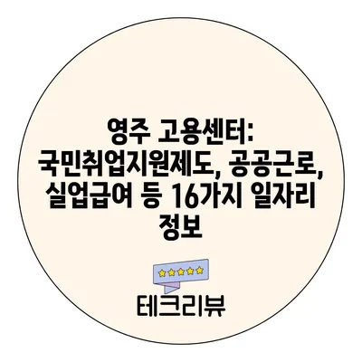 영주 고용센터: 국민취업지원제도, 공공근로, 실업급여 등 16가지 일자리 정보