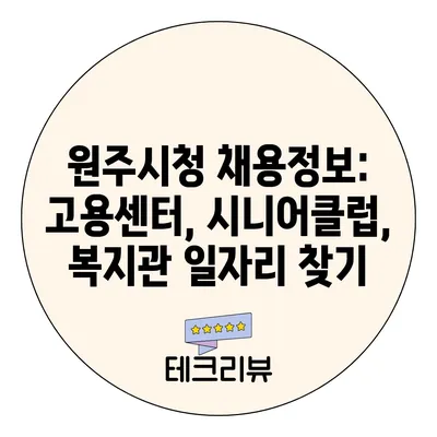 원주시청 채용정보: 고용센터, 시니어클럽, 복지관 일자리 찾기