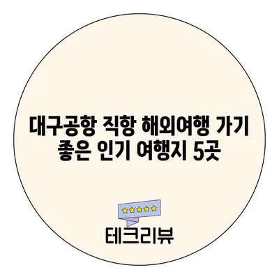 대구공항 직항 해외여행 가기 좋은 인기 여행지 5곳